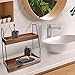 Aesthetic Design, Solid Acacia Wood: The bathroom counter organizer has a unique trapezoidal shape, with double layers, which it is not only good-looking but also allows you to store a variety of things, making your space well-organized and tidy. Combine with the handle design you can easily move it to another place to clean the wall or floor of your bathroom without removing such items from their place.