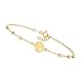 GENUINE 10KT GOLD — 10kt yellow gold circle charm bead station bracelet. Textured and polished finishes. 7.5 in. long with a 1/2 in. extender. 1/4 in. wide. 2.5mm station beads. 1mm cable chain. 1.1 grams. Springring clasp.