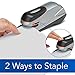 ERGONOMIC DESIGN – Sleek, black and silver stapler has a compact shape, for a smaller desktop footprint, and an ergonomic cushion grip for added comfort.