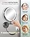 💪𝟏𝐗/𝟏𝟎𝐗 𝐃𝐨𝐮𝐛𝐥𝐞 𝐒𝐢𝐝𝐞𝐝 𝐌𝐚𝐠𝐧𝐢𝐟𝐲𝐢𝐧𝐠 𝐌𝐢𝐫𝐫𝐨𝐫:This lighted vanity mirror is double sided with 1X and 10X magnification. The high definition 1X lighted mirror for your overall makeup, and 10X maganifying beauty mirror shows details of your face when putting eyeliner, mascare, perfect for delicate makeup.Please keep 4 inch distance when use the lighted 10x magnifying mirror to avoid dizzy.