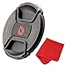 INCLUDES: 2pcs compatible Canon 58mm lens cap center pinch camera lens caps + MagicFiber microfiber lens cleaning cloth.