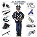 👮16PCS POLICE HALLOWEEN COSTUME SET: Includes more police gear —— The unique uniform with adjustable belt on Amazon that won't bump shirts! Police hat, eight tone gun , police baton, knife, walkie talkie, flashlight, handcuffs with 2 keys, police badge, police ID card, mesh goggles, grenades*2 and whistle.