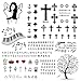 【Style and Elements】Two Sheets Different Sizes Temporary Tattoos including Alphabet Script Piano notes Portrait Cross Crown Heart Skull Digital tree Geometric patterns and more.