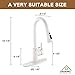 【Water saving Leak-proof sinkfaucet 】Kitchen faucet with pull down sprayer, precision workmanship to ensure its good leak-proof performance. 1.8gpm/60PSI (throttling standard)- Stainless steel sturdy structure, high temperature resistant PEX hose, high quality ceramic core to ensure long-term use.