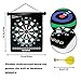 Double-sided magnetic dart board set, 12 darts (red & yellow & blue & green), and a 17.5 x 15-inch reversible roll up dart board. Hassle-free portability and hanging