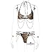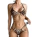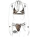 SEXY BIKINI: Make a sexy statement in this flirty look bikini featuring leopard/zebra pattern, triangle bra, halterneck, backless, thong bottoms with double-layer metal chain. This sexy bikini set will make your hips fuller and more charming.