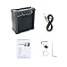 5W Amp( Adaptor NOT included)with guitar and microphone outlet, volume and gain control, drive button. Extra E & B strings, pick, cable and an instruction sheet.