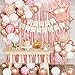 [BIRTHDAY DECORATIONS SET INCLUDES ]: 1pcs gold white happy birthday banner, 2pcs rose gold metallic star tinsel foil fringe curtains backdrop, 1pcs crown balloon (29.5×26.5in), 15pcs tassel ribbons(3 Colors), 2pcs rose gold four star foil balloons(10in) , 2pcs Five Star agate foil balloons(18in), 30pcs white latex balloons, 20pcs rose gold latex balloons, 5pcs rose gold confetti balloons, 5pcs pink agate balloons, 1pcs happy birthday cake topper for birthday decorations.