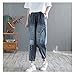 Spring autumn women's stretch waist cotton denim harem pants with patch design retro embroidery loose casual jeans.