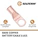 PACKAGE CONTENTS: 10 PCS. of Heavy Duty Bare Copper 2 Gauge (AWG) 3/8" Ring Battery Terminal Connectors / Lugs. 100% annealed copper, providing a high degree of conductivity for maximum current flow when used as battery terminals.