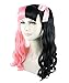 STYLISH PARTY WIG - Unique Pop Singer style costume wig, two color pink and black long curly ponytail wig with satin ribbon bows.