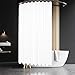 PREMIUM QUALITY: The tight weave of the fabric and superior quality of the polyester yarns provide this curtain with a firm, smooth texture, which promotes water bead formation and is made to withstand damp, moisture-rich bathroom environments; Drapes beautifully for a clean fresh look in your bathroom and has a soft feel