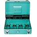 Large, turquoise petty cash box includes two keys to lock and secure your cash from theft, all keys are unique without any duplicates