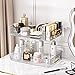 Size: The bathroom vanity organizer: 13.2" L X 8.7'' W X 10.4'' H, clear, clear gray, clear green color for your choosing, large capacity bathroom counter organizer can save your countertop space to the maximum, provide you a tidy, clean and organized counter.
