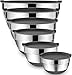 🍄 [EASY MEASURE & NON-SLIP] Quarts and liters are clearly engraved inside the bowls and fade proof, meet the demand of different measurement. A silicone non-slip bottom keeps the stainless bowls steady on counter tops when beating and whisking. You can mix, beat, or whisk ingredients with little mess as the wide, deep bowls have high walls to prevent splatter.