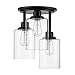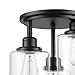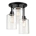 SLEEK AND CLASSIC DESIGN: The flush mount fixture blend of modern and vintage elements,Clear glass shows sleek and simple,Matte Black finish features a classic handsome details,completes a versatile look