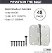 48 pack standard 3.5 x 3.5 inch door hinges, with 5/8 inch radius corners and 6 screw holes, compatible with the majority of interior residential doors.