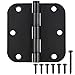 Matte Black Door Hinges 3.5 Inch 5/8"radius corners and 6 holes for front/indoor/outdoor door,cabinet,wooden box.lack rounded hinges for Doors Interior Includes 18 free screws for quick and easy installation.Black door hinges rounded 3.5 inch can be rotated 270 degrees.The extra long 18 screws will come in handy specially when replacing existing hardware using the same hole pattern.
