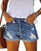 ✦Design:Causal Denim Shorts Feature Ripped Distressed Design, Zipper Fly with Button Closure, Folded Hem, Washed, Mid Waist, Moderate fit ,Traditional 5 Pockets. Womens Shorts for Summer,Spring ,Fall.