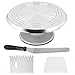 4-IN-1 CAKE DECORATING KIT: This cake stand turn table set include (1) 1x Cake Stand; (2) 1x Spatula (14.8''); (3) 1x Decorating Comb (4.7''x7.7'') and (4) 1x Icing Smoother (Max. length 6.1'', Min. length 4.3'', Width 4.25'')