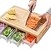 Multifunctional Design: The wide surface of the cutting board can be used for fruits, vegetables, cheese, etc. The board has an integrated juice trough, After cutting them up, slide them into the storage container from the large opening on the side.