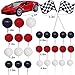 Race car cake toppers with red black white balls race car cheeckered flag,suitable for race car themed birthday party