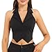 Women Lapel Collar Halter Neck Sleeveless Solid Color Stripes Print Three Button Closure Waistcoat