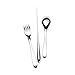 This 5-piece stainless steel flatware set contains the dining essentials for one person including a dinner spoon, dinner fork, dinner knife, dessert fork, and a coffee spoon.