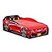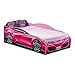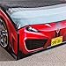 Remote-controlled LED lights and EV car sound effects. Colored underbody lights as a nightlight. Upholstered vegan leather interior and headboard. Padded interior for extra protection. Five-spoke racing wheels with LED lights and animations. Acrylic side windows function guardrails. Other fantastic details include a license plate, carbon fiber look spoilers, EV racing decals, and more.