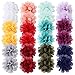 【SET OF 18 COLORFUL FLOWERS】--Set of 18 colorful flowers include pink, coral pink, fresh pink, teal, navy, gray, burgundy, turmeric, white, ivory, red, mint green, beige, watermelon red, violet and purple, etc. It is very easy to find a perfect headband among them for matching every outfit of your little girl.