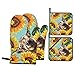 Halloween Oven Mitts Size:11"X7.2" Inches, And The Pot Holders Size: 8"X8" Inches.Oven Gloves And Pot Holder Are Made Of Polyester Fabric, And The Inner And Outer Layers Are Made Of Waterproof And Heat-Insulating Fabric.Thick And Durable, Heat Proof.