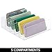 5 COMPARTMENTS: Countertops and closets stay clean and clutter-free with this compact clutch organizer with 5 separate storage slots; Store your daily go-to clutches and wallets vertically and keep them organized and easy to find to make your morning routine effortless; Set of 2