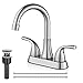 【Easy to Use】Two lever handles of this vanity faucet make controlling flow and temperature simple. 360°swivel spout offers more clearance and better access to the sink.