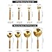 METAL CUPS AND TEASPOON SET - 4 gold measure cups and 4 small gold measuring spoons (including 1/4 Cup-60 ml, 1/3 Cup-80 ml, 1/2 Cup-125 ml, 1 Cup-250 ml, 1/4 tsp-1.25 ml, 1/2 tsp-2.5 ml, 1 tsp-5 ml, 1 tbsp-15 ml) to meet all you needs.