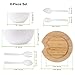 SET OF 4 NATURAL WHITE SALAD BOWL SET - Everything you need to serve a beautiful meal. Whether its pasta, salad or simply serving fruit, this set will impress. Includes a large bowl, a serving spoon and a server spork and a bamboo lid. Our lid features a small hole so that you can lay your serving utensils inside the bowl. No more trying to figure out where to place serving utensils.