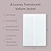 Made of 115gsm high quality clear vellum stock, the jackets have a smooth finish and substantial feel. Vellum jackets are professionally scored require folding.
