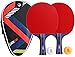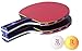 Two 5-star quality table tennis rackets with one orange and one white 3-star ping pong ball and a carry organizing case.