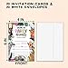 great value & quality - the woodland baby invitation bundle includes 25 thank you postcards, 25 white envelopes, 25 invitations, 25 books for baby cards and 25 diaper raffle cards.