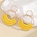✨Unique Design: Excellent bohemian statement earrings features classic double hoop pendant design, multi color raffia adds a rustic yet refined element to summer.