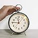 DECOR: Classic brushed metal design will make this alarm clock fit into any decor. Perfect for bedside, the office, desktop or just a cute clock in any space. Monochromatic gold finish on the rim and face. Great gift.