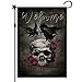 SKELETON GARDEN FLAG : Perfect as a day of the dead skull with crow decor halloween skull yard decor, Our halloween house flag conveys a message love of life while you welcome your visitors to your home. Our halloween yard flags is perfect for garden, patio, porch, balcony, deck, entryway,backyard and lawn...Decorate your outdoor with this skeleton garden flags to make somewhere charmful and leave unforgettable memories.