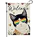 RAINBOW FLAG : Our welcome cat yard flag design is double sided, image printed visible from both sides and text also reads correctly from both sides. The classic design will never go out of style!
