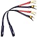 Package includes 2 cables (2 RCA female jacks). Red wire is Positive and Black wire is Negative