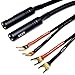 Barrier spade fork connectors to 1/4" TS speaker cable adapter, 2 channels