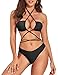 halter criss cross wrap bikini top, designed in halter neck style, self tie back, clasp closure, adjustable sling wrap with removeable padded cups, criss cross front, sexy cutout strappy bikini, sling biniki sets for women