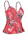 Womens swimwear tankini top design with adjustable strap and removable wire-free padding provide support and shape, surplice wrap front, v neck, front ruched, a line shape and flounce hemline, cute tankini swim top for women
