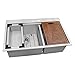 WORKSTATION sink with single-tier track - Overhanging lips on the front and back act as a track for sliding the built-in accessories | Includes solid wood CUTTING BOARD, deep stainless steel COLANDER, and dish-drying FOLD RACK that slide on the ledges converting your sink to a workspace