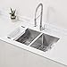 Topmount Installation: 1-inch wide and 1/4-inch high rim all around for a solid overmount look | 16 GAUGE thick premium T-304 grade stainless steel (18/10 Chromium/Nickel) - 37% thicker than most standard kitchen sinks | Commercial grade BRUSHED FINISH - Easy to clean and long-lasting
