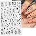 Moon Nail Art Stickers: 6 sheets moon nail stickers in black and white 2 colors, 3 sheets per color, suitable for most natural and fake nails, which can be used to design your nail style.
