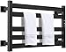 【FUNCTION UPGRADE】The heated towel rack is made of 201 stainless steel, and has an electrostatic black coating on the surface, which has excellent rust and corrosion resistance, high-quality waterproof electric heating elements, and the waterproof level reaches IPX5. Built-in visual timer and temperature control switch. The time can be set from 1 hour to 9 hours or open for a long time(0H).